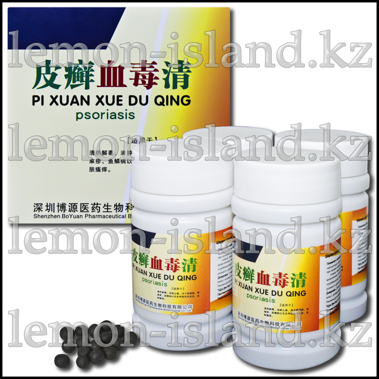 Пилюли для лечения кожных заболеваний Pi Xuan Xue Du Qing (Писюань Сюэду Цин) ("4 баночки Псориаз")- известное стредство Китайской традиционной медицины для лечения разнообразных кожных заболеваний, связанных с ухудшением работы печени, зашлакованностью крови и кишечника.
